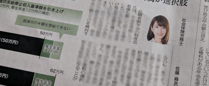 7月29日の日経新聞夕刊に、公的年金の法改正をテーマにした取材記事が掲載されました。